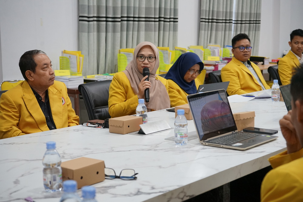 SAMBUT BAIK: Dekan Fakultas Ekonomi Unigoro, Endang, SE., MM., memperkenalkan prodi manajemen ritel kepada asesor.