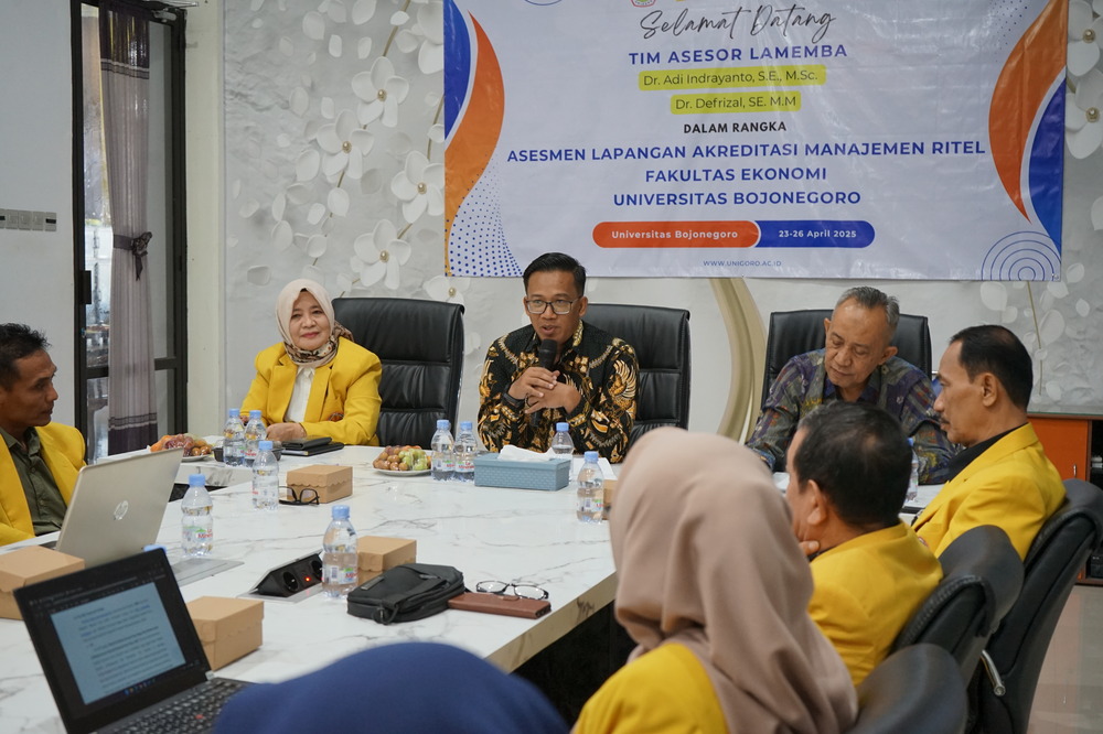 BOJONEGORO – Lembaga Akreditasi Mandiri Ekonomi, Manajemen, Bisnis, dan Akuntasi (LAMEMBA) melaksanakan asesmen lapangan akreditasi prodi manajemen ritel Universitas Bojonegoro (Unigoro), Kamis (24/4/25). Asesmen lapangan ini dipantau langsung oleh asesor utusan LAMEMBA, Dr. Adi Indrayanto, SE., M.Sc., dari Universitas Jenderal Soedirman dan Dr. Defrizal, SE., MM., dari Universitas Bandar Lampung. Keduanya disambut hangat oleh pejabat struktural serta dosen-dosen Fakultas Ekonomi Unigoro.
