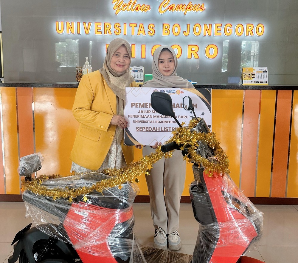 BOJONEGORO – Calon mahasiswa yang mendaftar di Universitas Bojonegoro (Unigoro) melalui jalur Serapan Bibit Unggul (Serbu) mendapat kejutan. Marcela Tiara Cella, siswi SMA Islam Temayang, berhasil memperoleh sepeda listrik dari Unigoro. Pengundian hadiah ini telah dilaksanakan pada 17 April 2025 yang disiarkan langsung di Tiktok.