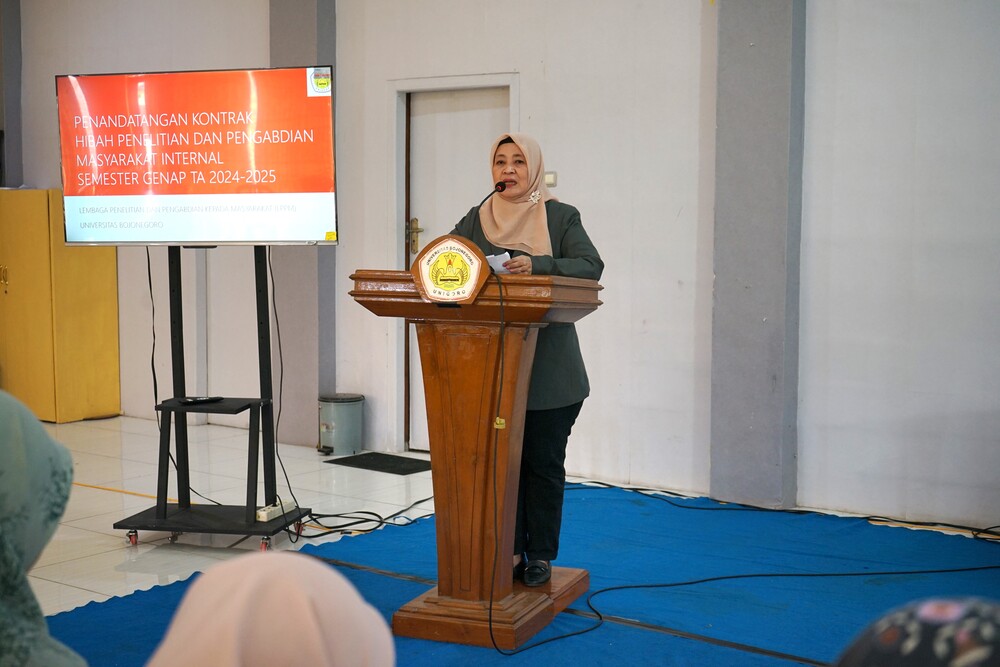 BOJONEGORO – Lembaga Penelitian dan Pengabdian Masyarakat (LPPM) Universitas Bojonegoro (Unigoro) menggelar penandatanganan kontrak penelitian dan pengabdian kepada masyarakat pendanaan internal semester genap tahun 2025, Rabu (21/5/25). Sebanyak 91 proposal penelitian dan 70 proposal pengabdian masyarakat yang diusulkan berhak menerima pendanaan hibah internal tersebut. Jumlah proposal yang dikumpulkan meningkat signifikan dibanding periode sebelumnya.