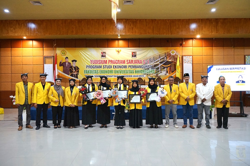 Kaprodi Ekonomi Pembangunan Unigoro, Dr. M. Saiful Anam, SE., MM., mengumumkan tiga nama lulusan terbaik di prodi tersebut. Sinta Nur Salsa Bella, SE., dengan IPK 3,84; Siskha Trifandha, SE., dengan IPK 3,81; serta Siti Ayu Ulandari, SE., dengan IPK 3,80.