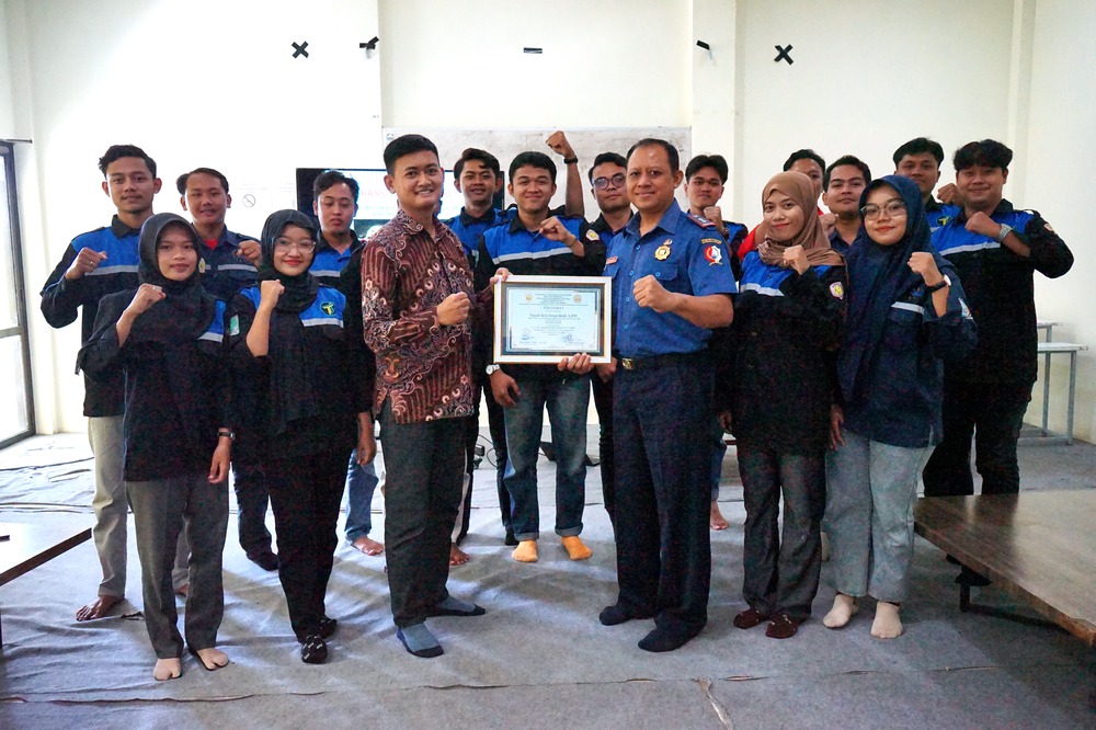 KOLABORATIF: Mahasiswa dan dosen teknik industri Universitas Bojonegoro bersama Kabid Pencegahan, Pengendalian, dan Pemberdayaan Masyarakat Dinas Damkarmat Bojonegoro, Teguh Aris S.B., S.T.P.