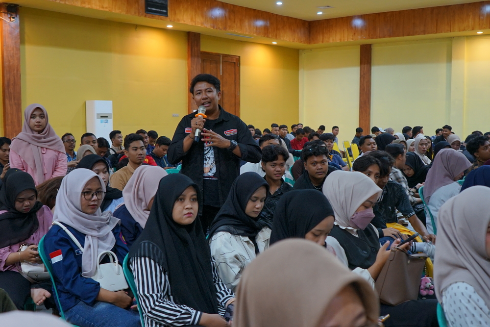 RESPON: Mahasiswa Unigoro melontarkan pertanyaan kepada pemateri dalam pembekalan KKN TK Unigoro 2025, Jumat (9/5/25).