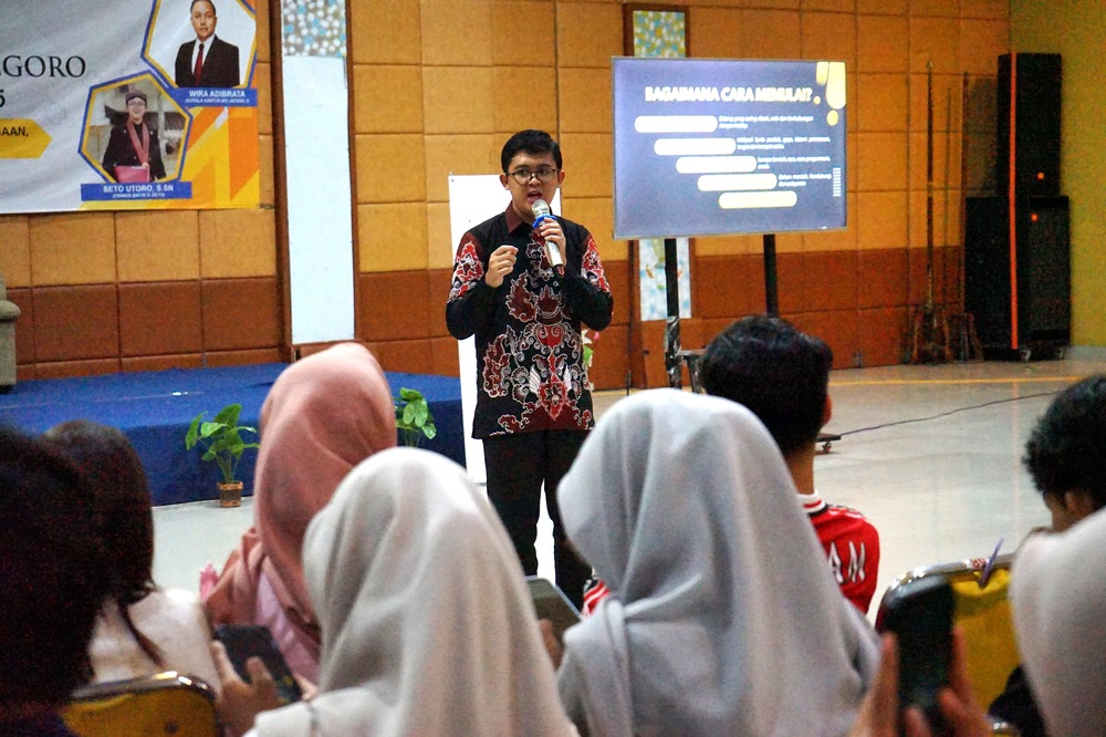 Di hadapan mahasiswa, Seto menceritakan lika-likunya dalam berbisnis. Sejak duduk di bangku SMP, dia mengawali dengan berjualan batik. Seto memasarkan batiknya dengan cara mengunggah foto-foto produk di Facebook. “Begitu ada yang komentar, Kak ini harganya berapa, saya langsung meresponnya. Kirim pesan via Messenger, lalu lanjut chat di WA. Hingga akhirnya saya bisa mendapatkan satu costumer,” ujarnya.