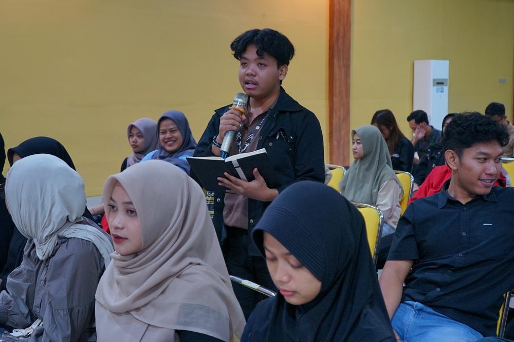 RESPONSIF: Mahasiswa Unigoro memanfaatkan sarasehan sebagai momen diskusi dengan praktisi hukum.