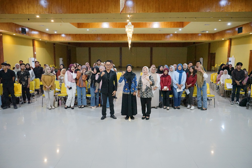 ANTUSIAS: Kuliah praktisi prodi ekonomi pembangunan Unigoro di Hall Suyitno diikuti ratusan mahasiswa.