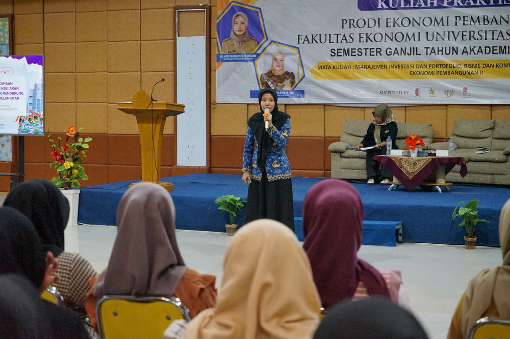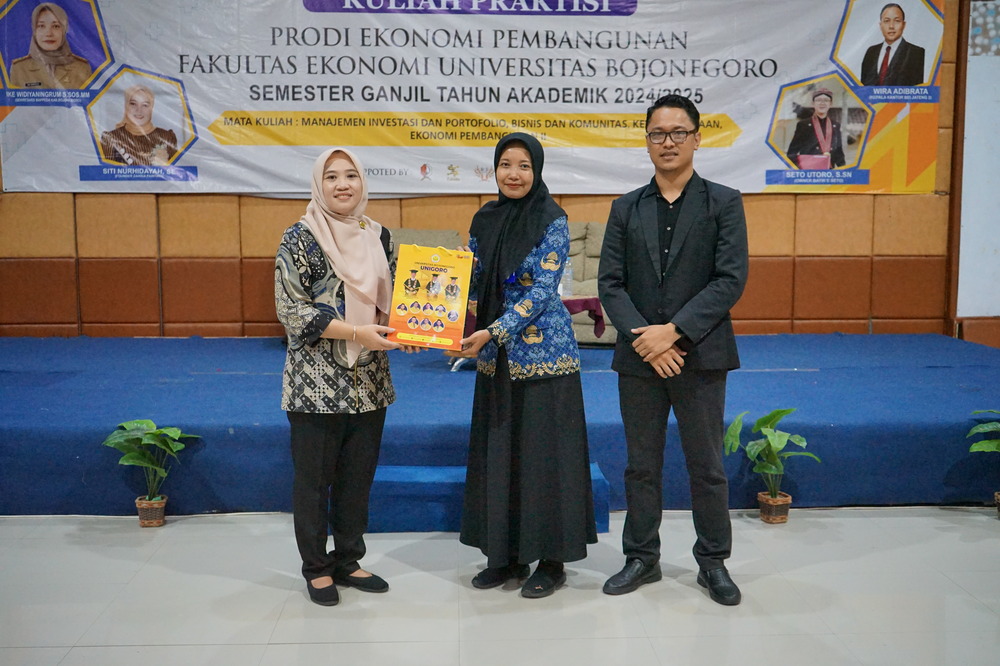 BOJONEGORO – Prodi ekonomi pembangunan Universitas Bojonegoro (Unigoro) menggelar kuliah praktisi di Hall Suyitno Unigoro, pada Selasa (17/12/2024). Kuliah praktisi kali ini mengusung tema strategi perencanaan pembangunan dan kebijakan ekonomi publik untuk mendukung pembangunan berkelanjutan. Prodi tersebut menghadirkan Ike Widiyaningrum, S.Sos., MM., selaku Sekretaris Badan Perencanaan Pembangunan Daerah (Bappeda) Bojonegoro sebagai praktisi.