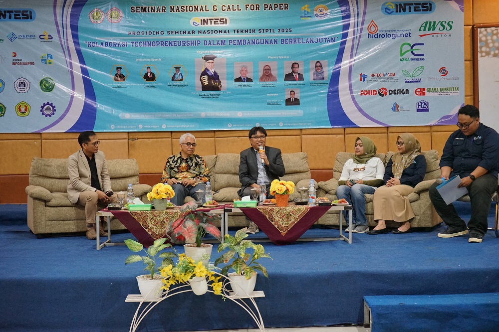 SINTESI III 2025 yang dimoderatori oleh Zainul Ikhwan, ST., MT., menghadirkan empat pembicara utama. Antara lain Guru Besar Teknik Sipil Universitas Jember, Prof. Dr. Ir. Jojok Soetjipto, ST., MT., IPM; Guru Besar Teknik Sipil Universitas Sebelas Maret Surakarta, Dr. Tech. Ir. Sholihin Asad, MT.; Kaprodi Teknik Sipil Unigoro, Dr. Hj. Nova Nevila R., MT.; Ketua DPP Inkindo Jawa Timur, Ir. Irwan Susilo, ST., MT.; serta Product Development Manager PT. Citicon Nusantara Industries, Dini Fitri Sari. Mereka memaparkan hasil riset dan solusi tentang pembangunan berkelanjutan yang memanfaatkan teknologi. (din)